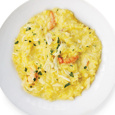 This variation on a classic risotto recipe features shrimp, crab, and creamy mascarpone cheese.